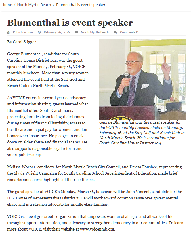 The following article was published in the North Myrtle Beach Times